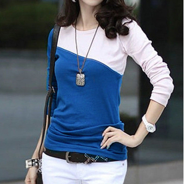 1Pc Spring Female Blouses Shirt Women Women's Blouse Feminino Long Sleeve Splice Slim Fitted Shirt Casual Tee Shirt Women Blouse