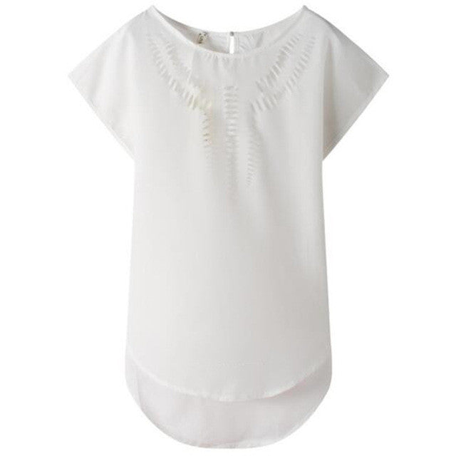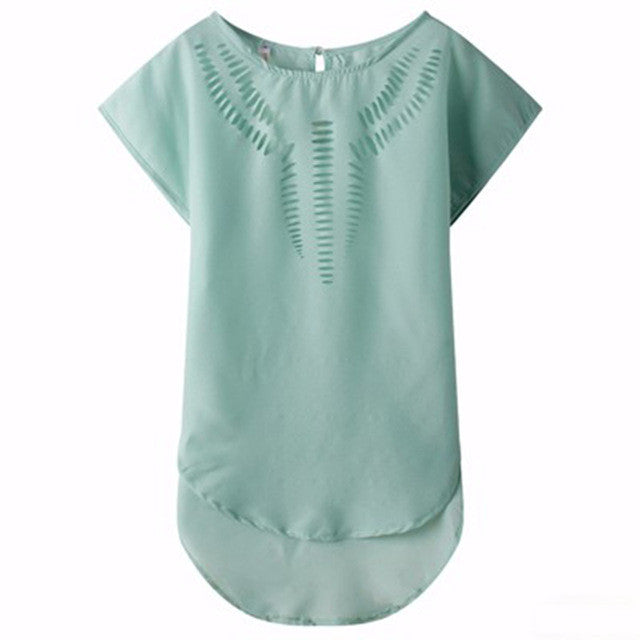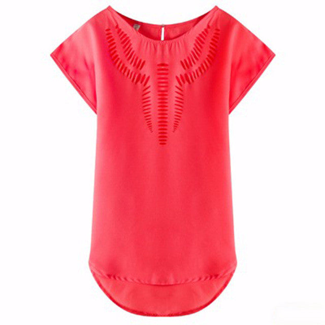 New Style Fashion Women Tops Blouse Summer Carved Hollow Out Short Sleeved Chiffon Blouse Leisure Chiffon Shirts Female Lady