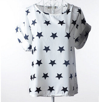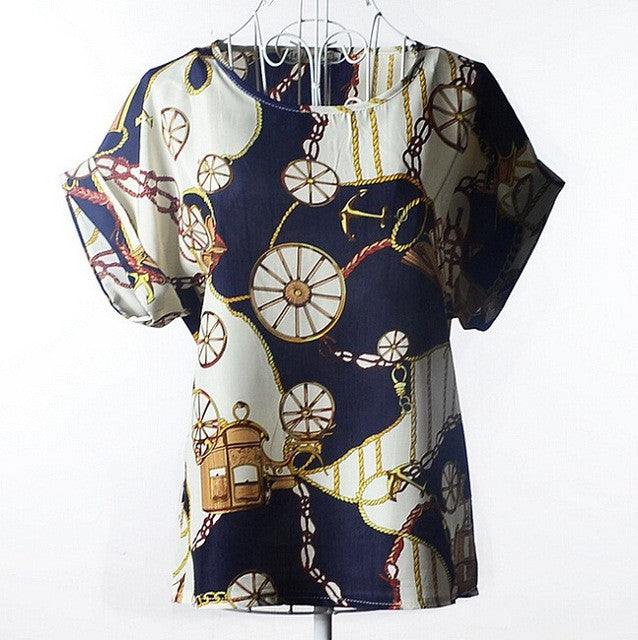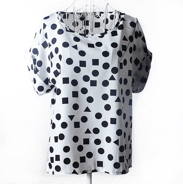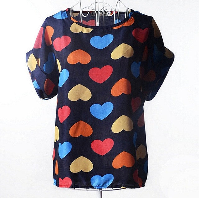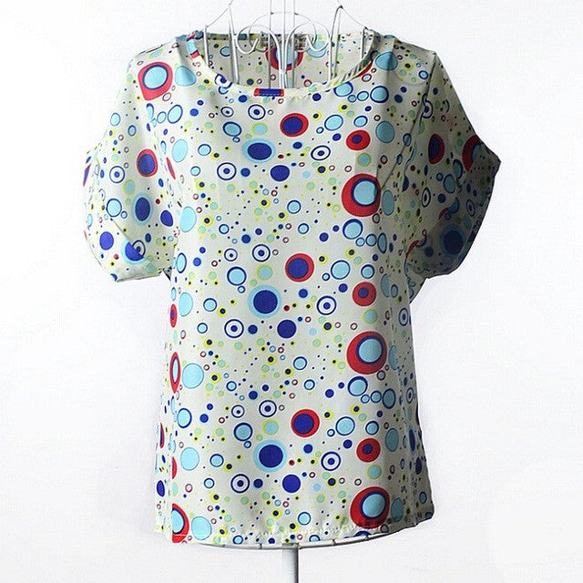 lollas 2018 New Cute Multicolor Chiffon Blouse Print O-neck Short Sleeve Shirt For Women S-XL